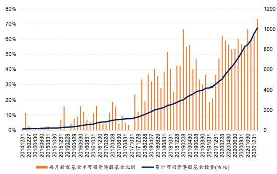 从存量基金来看,截至2020年四季度,共有664只基金投资港股市场,约占全体可投资港股基金数量的66%,累计投资港股市值3622亿元。国信证券认为,若未来港股市场表现持续优异,预计南下资金有望进一步扩张。