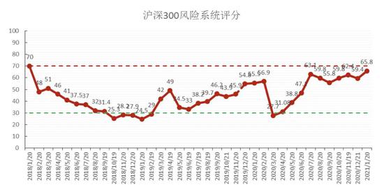沪深300指数的中泰资管风险系统评分为65.8,较上月59.4有所上升,主要原因由于估值水平上升伴随着,期权市场隐含波动,市场因子拥挤度均快速上升,市场风险正在积累。