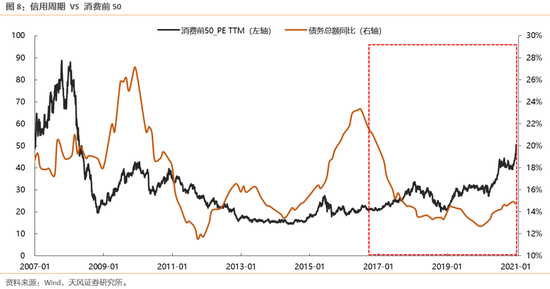因此,最终信用周期与A股市场整体的估值水平(wind全A估值中位数)密切相关。