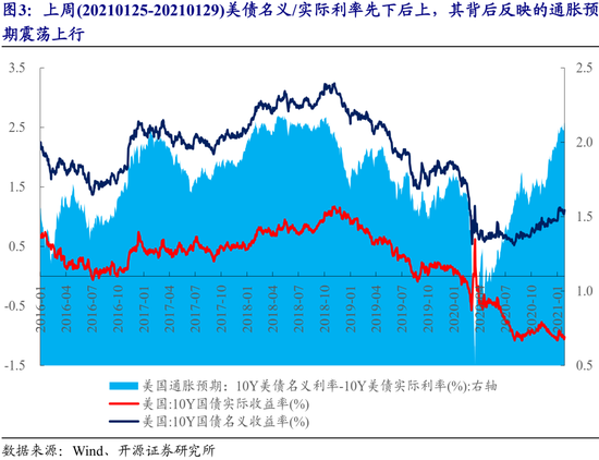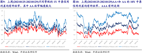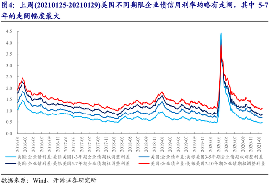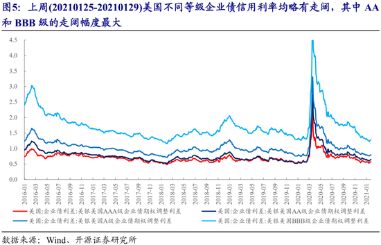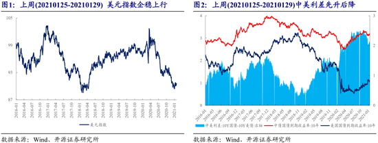 上周(20210125-20210129) 美元指数企稳上行,中美利差先升后降,美债名义/实际利率均先下后上,其背后反映的通胀预期震荡上行。对于海外而言,上周美国不同期限/等级企业债信用利率均有所走阔,Ted 利差维持低位,美国金融系统流动性整体仍较充裕;对于国内而言,上周流动性分层现象有所加剧,信用利差大多收窄,其中短期低等级信用利差收窄较多,长端 AAA 级信用利差有所走阔。