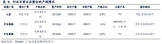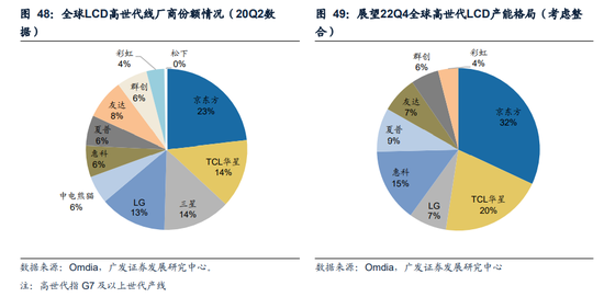 三星苏州和中电熊猫产线被龙头整合,行业集中度加速提升。由于前期行业景气度持续低迷导致的行业普遍性亏损,在龙头京东方和TCL华星的规模效应持续显现情况下,今年多条高世代产线被龙头厂商整合。目前TCL华星对三星苏州G8.5产线,以及京东方对中电熊猫南京G8.5和成都G8.6产线的收购正在进行中。在整合前以20Q2数据来看,京东方和TCL华星在LCD高世代线的产能面积份额合计为37%,而在整合后,考虑新增产能释放和韩厂产能退出,两家龙头的份额将提升至52%。在行业集中度加速提升的情况下,我们判断龙头厂商对上下游议价能力以及对产品结构的控制能力将明显提升。