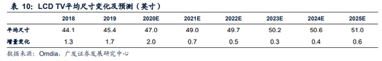 大尺寸化趋势将带动大尺寸面板需求端持续增长。除了销量的影响以外,大尺寸化也为TV面板需求端带来充沛增量。根据Omdia数据,2019年LCD TV平均尺寸达到45.4英寸,同比增加1.3英寸,在今明两年预计平均尺寸将分别增加1.7和2.0英寸,而2022年及以后预计每年也将提升0.5英寸左右。在现有水平上假设销量不变,仅靠平均尺寸增加0.5英寸,就将带来需求面积2~3%的增量。由此我们判断从长期层面来看,TV持续大尺寸化将为行业需求端带来持续的增长动能,长期年化增速有望维持在3%以上。