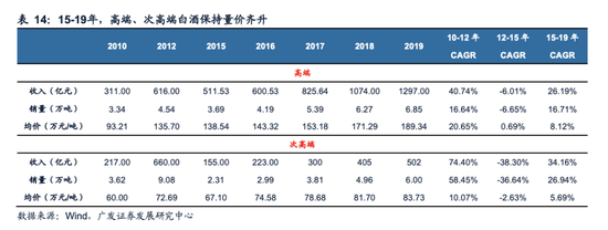 受益消费升级,2015-2019年白酒行业结构性复苏,我们认为未来5年高端、次高端白酒有望延续量价齐升的趋势。2015年至今随消费升级推动以及主要消费人群从政商群体转向民间消费,白酒行业进入结构升级的发展阶段,高端酒规模从2015年的512亿元提升至2019年的1297亿元(CAGR:收入26%,量17%,价8%),次高端规模从2015年的155亿元提升至502亿元(CAGR:收入34%,量27%,价6%),呈现量价齐升的趋势。我们认为,随着消费升级的延续,未来5年高端、次高端白酒有望延续量价齐升的趋势。