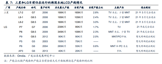 韩厂落后产能仍占大尺寸面板15%产能比例,退出只是时间问题。根据Omida数据,目前三星和LG在韩国本地老旧LCD产线仍然占有全球大尺寸面板合计15%左右产能。这部分产线基本在2012年之前建设,生产效率和成本结构均无法与国内产线竞争,在历史上的行业景气低迷时期甚至面临亏损现金流的情况。由于折旧均已计提完成,因此产能关停对于厂商来说并无报表端压力,在前几年已经退出了相当比例,我们判断当前剩余产能的退出只是时间问题。