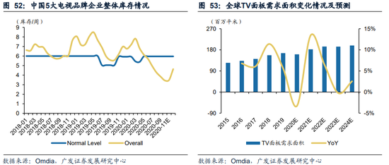 TV厂商库存低于正常水平,21Q1备货动能不减。在行业供给端增幅相对有限的情况下(并且在19Q3~21Q1出现连续的整体产能环比下降),需求端的爆发使得TV厂商下半年的库存明显低于正常季节性水平。根据Omdia数据,今年10/11月中国5大电视品牌整体库存仅有3~4周,远低于正常的6周库存水平。基于此,我们判断在12月以及明年Q1,虽然面板备货需求进入季节性淡季,但由于下游TV品牌的补库存动能强劲,因此需求端大概率将呈现“淡季不淡”的状态。