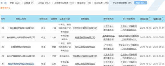 上交所官网显示,2020年12月1日-2021年2月1日,共有25家科创板IPO企业终止审核。而2020年1月至2020年11月,科创板IPO企业终止审核的数量也才26家。