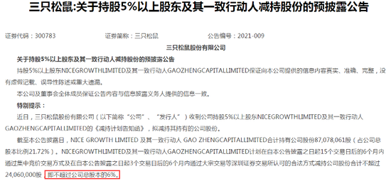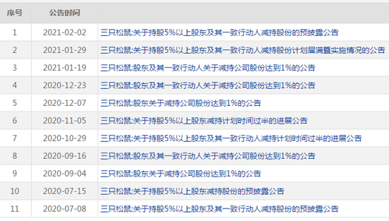 这一次还是减持惹的祸!三只松鼠在2月2日披露,持股5%以上股东在未来6个月减持不超过公司总股本6%的股票。