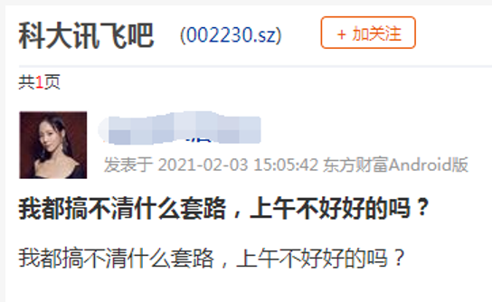 在科大讯飞股吧中,有股民发出疑问:“我都搞不清什么套路,上午不好好的吗?”