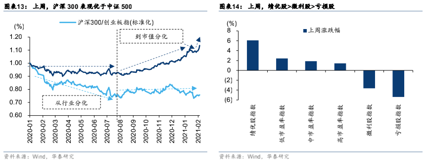 上周,A股市场表现继续分化,低估值、景气度向上、业绩超预期板块领涨,如免税、银行、白酒、畜牧业、家居、生物医药等,绩优股>微利股>亏损股、低市盈率>中市盈率>高市盈率。港股表现优于A股,结构上港股科技等新经济稀缺赛道表现更强。