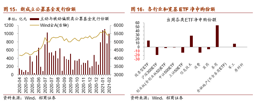 【资金·众寡】公募基金发行高位,外资逆势放量流入。2月1日~2月5日期间,北上资金逆势大幅净流入253亿元;融资资金前四个交易日合计净流出122亿元;当周新成立偏股类公募基金998亿元,较前期提升;ETF当周净申购16亿份。行业偏好上,北上资金集中买入电气设备,另加仓计算机、机械、医药;融资资金买入化工、汽车、电气设备等;券商、信息技术类净申购。重要股东净减持规模明显扩大,计划减持规模略有提升。