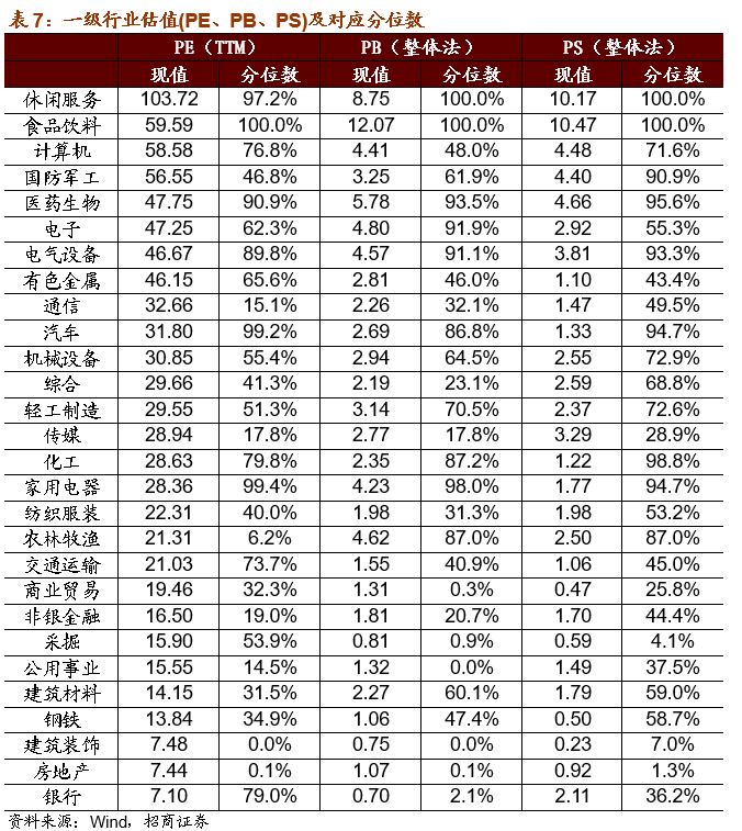 【数据·估值】本周全部A股估值水平下行,PE(TTM)下行0.1X至19.3X,处于历史估值水平的89.6%分位数。食品饮料板块上涨明显,休闲服务、国防军工、电子板块下跌明显。