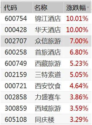 具体来看,两市行业板块中,旅游酒店板块表现突出,截至收盘,华天酒店、锦江酒店涨停,首旅酒店、众信旅游等跟随走高。民航机场板块表现也比较强势,中国国航、华夏航空涨逾5%,东方航空、吉祥航空等跟涨。