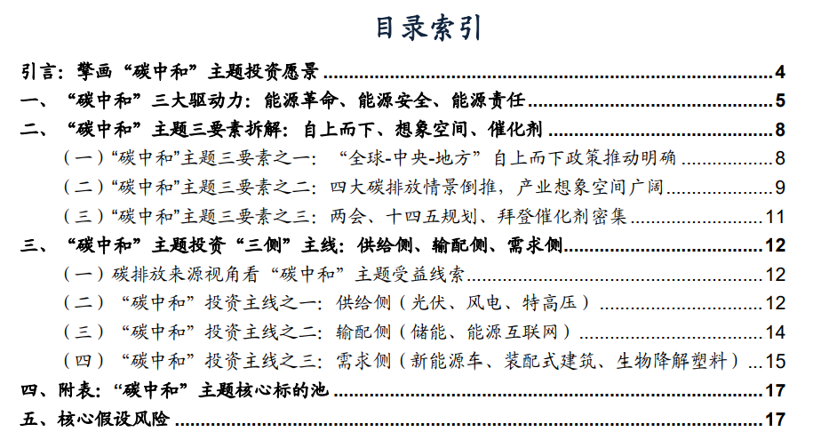 ● 风险提示:碳中和政策推进不及预期,中美关系超预期,新能源产业渗透率提升不及预期,全球疫情反复。