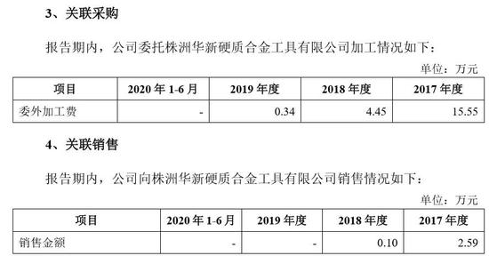 报告期公司第一大供应商都是中钨高新(000657)的两家子公司自贡硬质合金有限责任公司、株州硬质合金集团有限公司。公司向自贡硬质公司采购碳化钨、向株洲硬质采购钴粉及其他金属粉末。2017年、2018年、2019年及2020年上半年,华锐精密向第一大供应商采购金额分别为2134万元、3699万元、3171万元及1654万元,占总采购金额的比例分别为38.80%、43.11%、36.24%及34.83%。