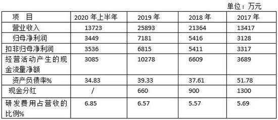报告期各期末,公司资产负债率分别为 51.78%、37.61%、39.33%和 34.83%,整体呈下降趋势。截至2020年6月末,公司短期借款3022万元、长期借款4020万元,2020年上半年支付财务费用284万元。公司募投资金用途中有1亿元是用于补充流动资金,预计2021年资产负债率会进一步下降。