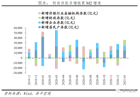 M1同比增速14.7%创2018年2月以来新高,环比大幅回升6.1个百分点,预计2月春节期间将再度回落。一方面,交易性需求上升,实体经济活动仍在持续恢复,另一方面,去年由于春节在1月,M1零增长,低基数、春节错位效应带动今年1月M1大幅提升。