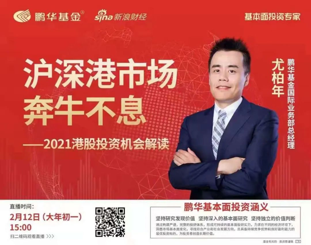 类似的还有,大年初一,鹏华基金国际业务部总经理尤柏年直播解读港股市场的投资机会。