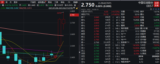 港股中国石油股份暴涨,其中2月16日一天该股暴涨13.17%。
