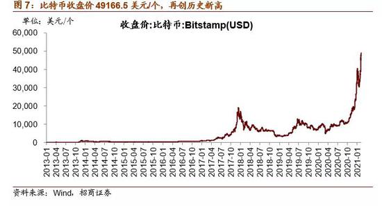【比特币:价格再创历史新高】截至2月16日,比特币收盘价上升至49166.5美元/个,再创历史新高,近一年来比特币价格增长近6倍。