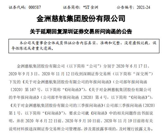 聘请深圳堂堂为审计机构的*ST金洲、*ST斯太也均收到了年报问询函或2020年度业绩预告关注函。