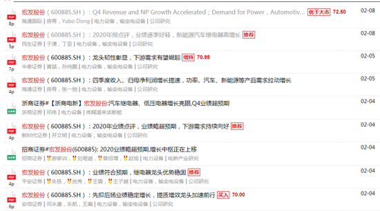 年报显示,宏发股份2020年全年净利润同比增长18.19%,去年同期仅为0.75%。随着公司业绩的逐渐好转,各大券商提高了对宏发股份的评级,民生证券评价宏发股份称“新能源继电器高增长”,并给出评级“增持”;海通国际对其的评级为“优于大市”,并给定目标价72.5元,截至2月19日收盘,宏发股份股价为58.51元/股。