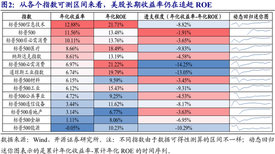 (1)美股长期收益率仍在追赶ROE,还未“透支”;然而A股的部分行业已经明显大幅透支了未来的增长预期;