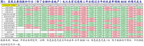 (2)从短期来看,主要指数以及绝大部分行业从未有过连续三年出现过当年的收益率领跑ROE的情况发生。