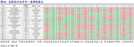 上述分析给了我们一个讨论龙头问题的定量视角,一个估值的锚:即龙头跑赢需要长期稳定的高ROE作为支撑,但是当收益率已经远远超过了自身ROE水平时,面临的约束条件就会变多。我们想说的是,当下部分核心资产还能不能继续涨,并不能从美股的过去的“抱团史”或者“龙头跑赢史”中得到答案,因为美股给出的ROE之锚已经被偏离。我们的建议是至少不押注在估值扩张这一边。当然对于部分周期龙头,尚处在重定价过程中,以长期ROE为锚即可。