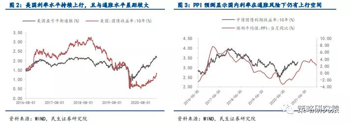 趋势二是美联储的表态体现了其对通胀容忍度较大,通胀的上行空间由此打开。在一月份的美联储FOMC新闻发布会上,美联储主席鲍威尔明确表示,目前仍然认为很可能通胀的上行是基于基数效应,因此是短暂而非长期的,所以要保持耐心,继续维持观望态度。这表明了美联储目前是以经济增长和就业为主要政策目标,收紧的风险至少目前还不会真实发生,也体现了美联储对通胀的容忍度较大,通胀上行的空间可能由此打开。