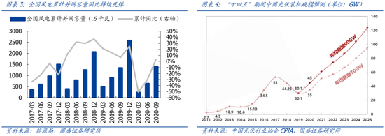光伏2020年前三季度国内实现新增并网装机18.70GW,同比增长约17%,三季度以来国内光伏需求开始大幅回暖,四季度竞价项目有望迎来装机并网高峰。根据光伏行业“十四五”形式展望报告,“十四五”期间光伏年均装机有望达到70~90GW,行业成长确定性强。
