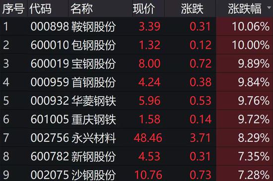 市场成交量放大,两市合计成交1.29万亿元。周期股全线走强,钢铁、油化