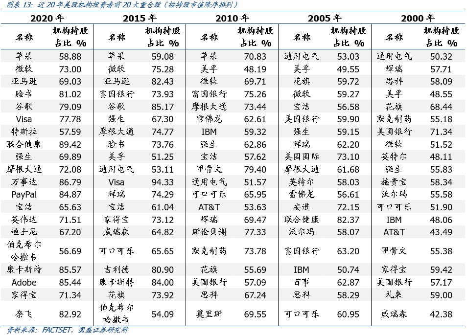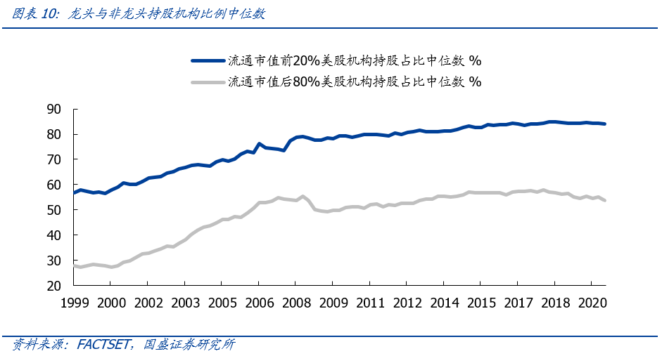 美股机构对龙头的追逐在过去20年中从未止步,2009年以来愈演愈烈。