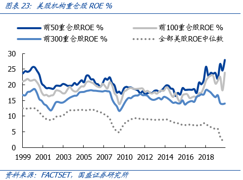4、相比于利润增速,美股机构更注重ROE,且重仓股享受估值溢价。