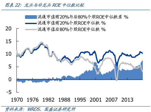 机构投资者长期抱团美股龙头实际上也是对盈利确定性和稳定性的持续追求。中长期来看,美股机构化带来定价体系由估值主导向盈利主导变迁,机构投资者对龙头与非龙头的持股行为也呈现出较为明显的ROE驱动的特征,美股龙头与非龙头机构持股占比的分化水平与二者ROE分化水平之间的变动较为一致。