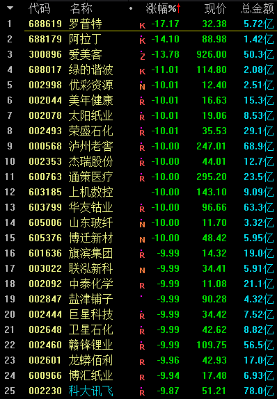 在两市合计23只跌停的个股中,共计有8只为沪深300成分股、5只为中证500成分股,两者合计占比接近超过全市场跌停个股总数的六成。