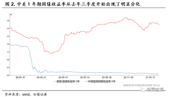 我们知道中国率先控制住了疫情,从去年二季度以来,货币政策就在回归常态化了,所以国内国债收益率上的拐点比海外早,上的幅度比海外大。