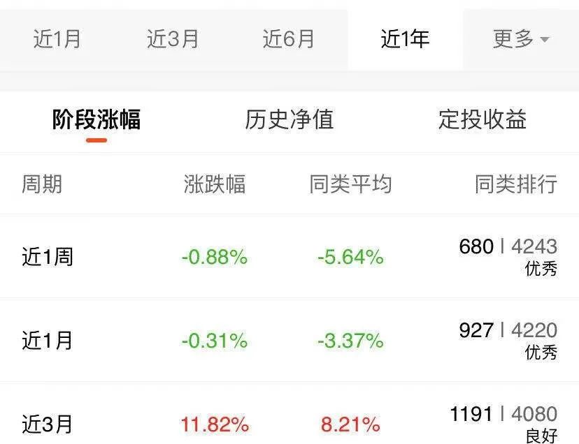 近一周,在其他很多基金净值大跌之际,该基金净值仅下跌了0.88%。上周五基金净值还一度达到1.116元,创出历史新高。