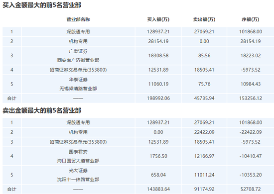 龙虎榜数据显示,万科A共有2家机构席位现身,分别位列买二、卖二,合计净买入5732.11万元,占净买额的5.21%。同时也出现了两家深股通的身影,净买入10.19亿元,占12.15%。