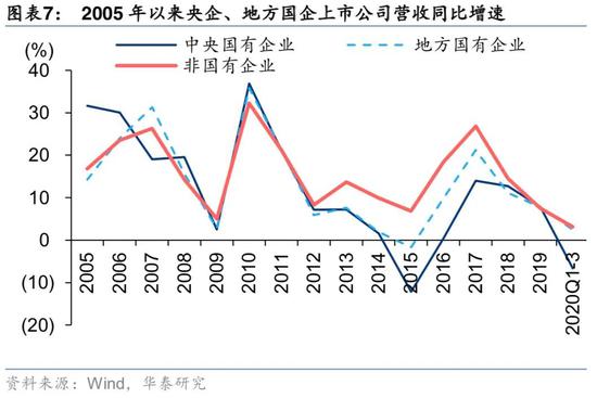 从历史来看,2005年以来在大多数年份国有企业的营收和净利增速都跑输非国企,大致呈现:非国企>地方国企>央企的状态,我们认为这一定程度上也反映了国有企业经营相对较为保守,而民营经济则相对更有活力。但2016年以来,国有企业开始迎头赶上,在营收增速方面,2016年以来国有企业基本与非国企差距有所减小,而在净利增速方面,2017-2019年,国企净利增速开始高于非国企,呈现出地方国企>央企>非国企的格局。值得一提的是,在此期间,2016年国内开始供给侧改革,而国企改革再次推进也从七大垄断领域推进混改正式开启,国企营收和净利增速显著回升并赶超非国企。2020年受新冠疫情影响,国企营收和净利增速下滑快于非国企,非国企在2020Q1-3盈利已经显著恢复。总体,我们认为,在供给侧改革和国企改革的双重推力下,国企和非国企成长性差距有所减小,而2016年来国企改革确实已经取得了明显的成效。
