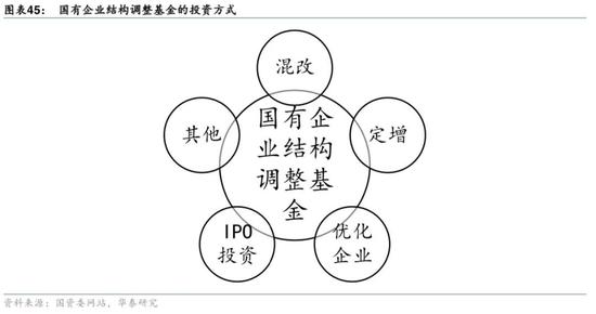 国有企业结构调整基金由中国诚通控股集团牵头,联合9家央企、地方国企和金融机构共同发起设立,肩负着国有企业布局结构调整的重大改革使命。于2016年9月注册成立,募集资金总规模为3500亿元,已完成项目投资14笔,投资总额480亿。该基金的主要任务是服务于供给侧结构性改革,支持重点行业国有企业实施行业整合和专业化重组,促进国有企业转型升级、提质增效、做大做强,具体来看,参与方式主要包括:混改、定增、非公开发行、优化企业、IPO投资等多种形式。