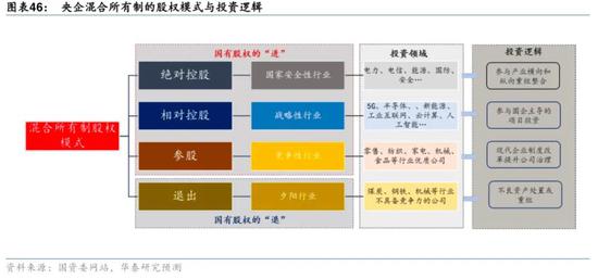 (3)对于参股方向,主要是指一些产业壁垒相对较低,行业格局相对成熟的竞争性领域,对于其中的优质公司,未来通过混改,引入先进的战略投资者,进而进行一些现代化企业制度的改革,最终提升公司治理和经营效率,而在这个过程中,国企更多充当财务投资者的角色,而较少干涉公司的经营管理。