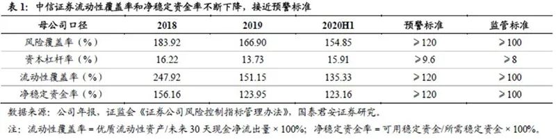 中信证券部分流动性指标接近预警标准