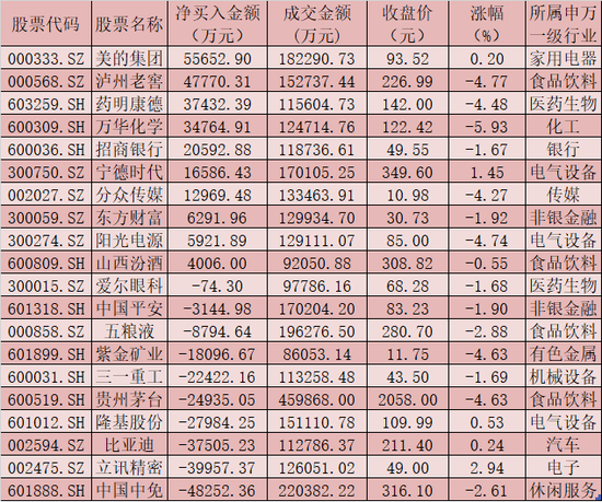 沪、深股通前十大成交活跃股交易情况