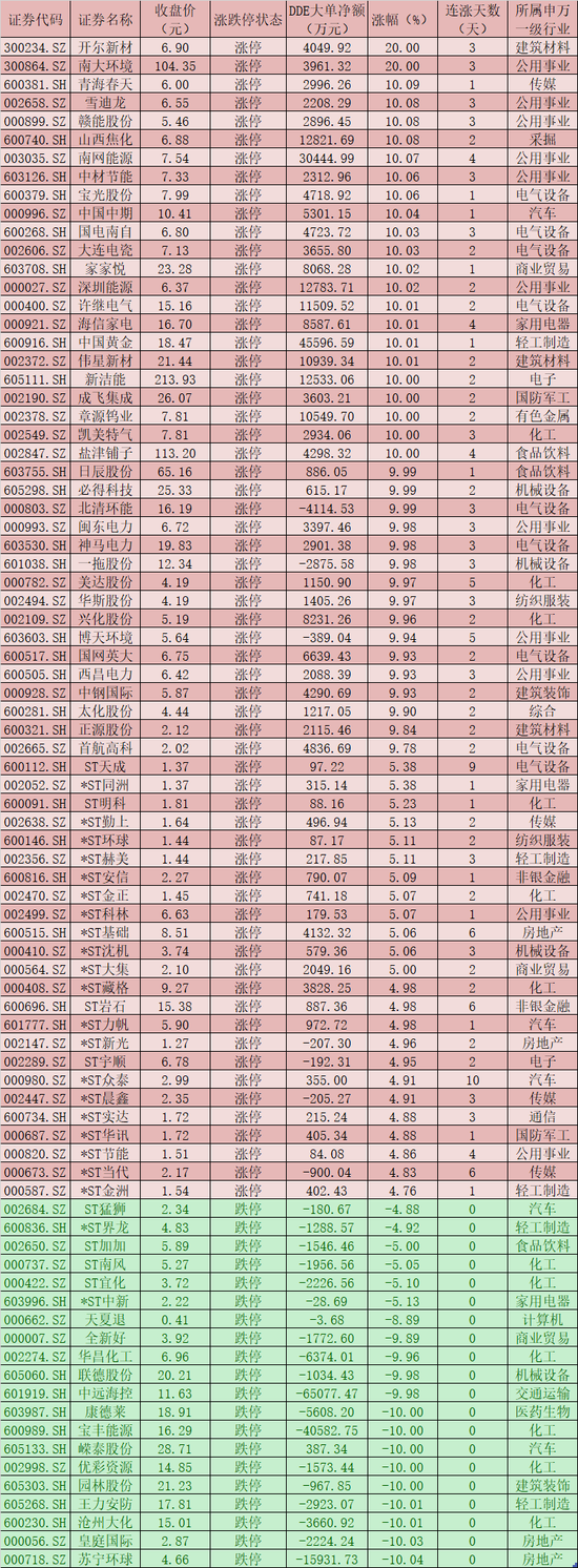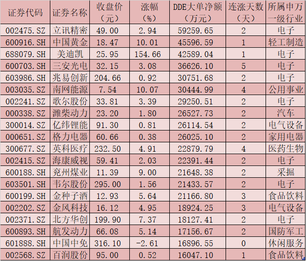 一、周二(3月2日)DDE大单资金净买入TOP20