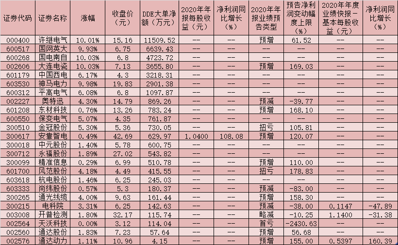 可以看到,年报业绩预期向好也支持着特高压概念股的良好表现。统计显示,截至3月2日收盘,安靠智电已披露了2020年年报业绩,该公司报告期内实现净利润同比增长108.08%。同时,有9家公司披露了2020年年度业绩快报,报告期内实现净利润同比增长的公司共有6家,按去年净利润同比增幅排序分别为:通达动力(160.39%)、思源电气(69.09%)、长高集团(40.88%)、汉缆股份(40.59%)、金杯电工(28.85%)和川润股份(0.85%)。