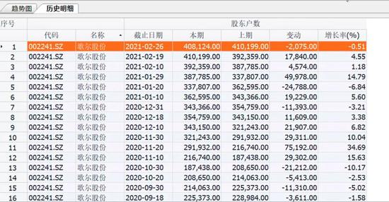 歌尔股份最新股东户数40.8万户,较去年底增加约6.5万户,增幅16%;相比去年10月30日时18.7万户的股东户数,短短4个月间已经翻倍。