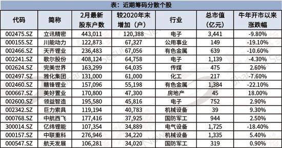 如立讯精密的最新股东户数已达44.3万户,较去年底增加约12万户,增幅27%。