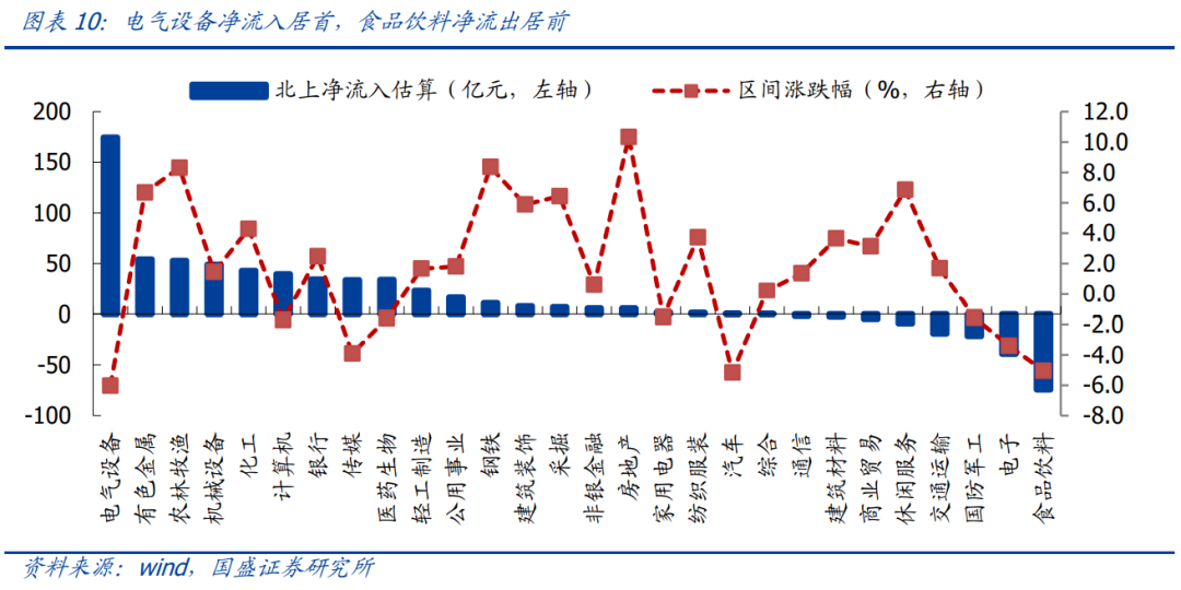 根据国盛证券策略团队测算,整个2月份北向资金净流入额靠前的行业包括电气设备、有色金属、农林牧渔、机械设备等行业。除了电气设备行业外,其余行业估值均相对较低。而2月北向资金净流出靠前的均为相对高估值行业,包括食品饮料、电子、军工行业等。