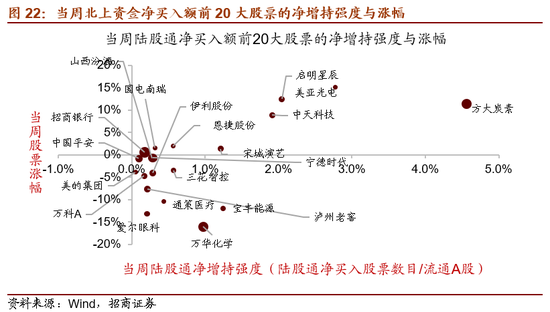 个股方面,北上资金净买入规模较高的为招商银行、万华化学、方大炭素、宁德时代等,净买入额超过10亿元;净卖出规模较高的包括贵州茅台、格力电器、东方财富等。