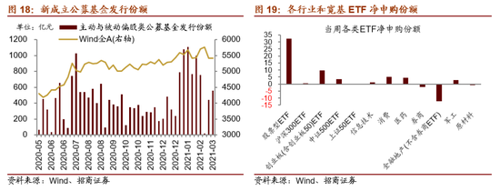 本周新成立偏股类公募基金559亿份,相比前期略有回升,其中包括不少行业类ETF(化工、医药、农业类ETF等)。